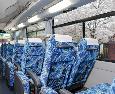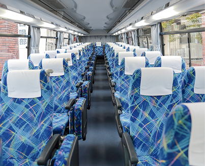 バスの車内は清潔で静か、快適な環境が整えられています。多くの生徒が通学時間を有効に活用し、英単語帳を開いたり、一日の予定を確認したりと、それぞれのスタイルで学びの時間を過ごしています。