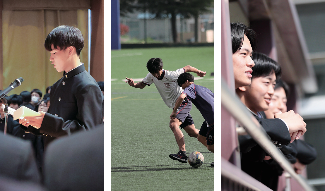 川越東高校は「付属中学を併設しない私立の男子校」だから、スタートラインはみんな同じ。手にした環境もみんな同じ。そこから、共に汗を流す仲間を見つけ、勉強でも部活動でも切磋琢磨し合いながら、それぞれが思い描く夢に向かって3年間走り続けます。
