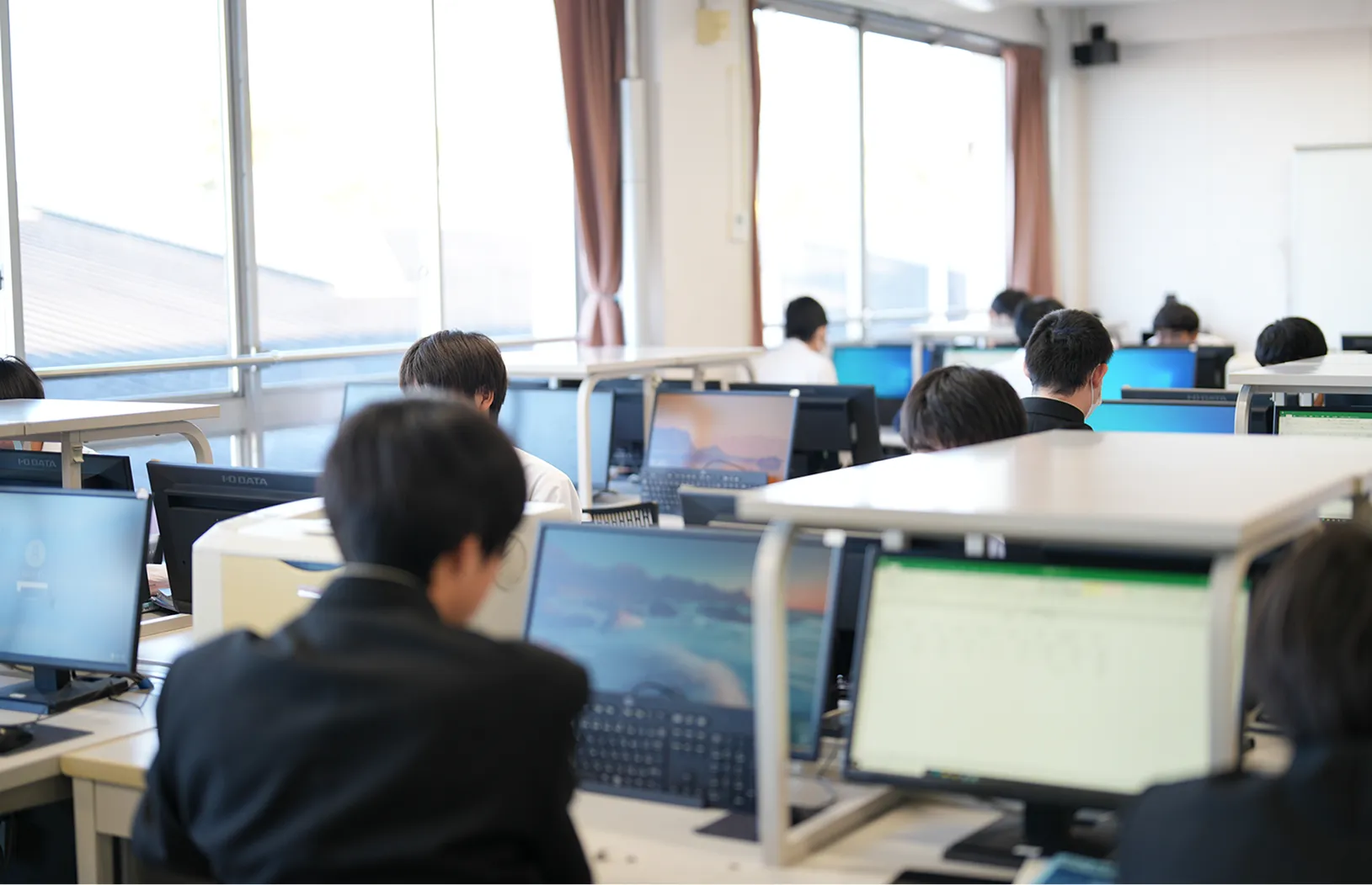 ICT教育は現代の学校における重要な教育活動の一部となっています。本校では県内の高校の中でもいち早く「一人一台端末」を実現し、タブレット端末を利用した教育活動を積極的に推進しています。