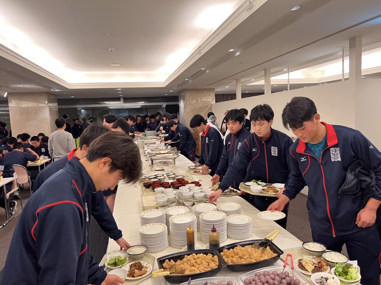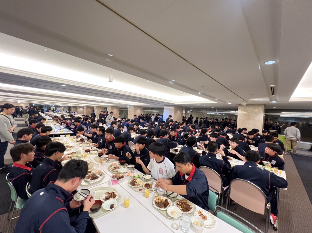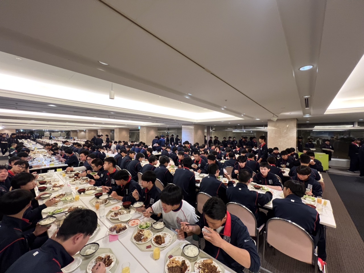 実習が終了し、食事をとっています。1日目、無事に終了しました。