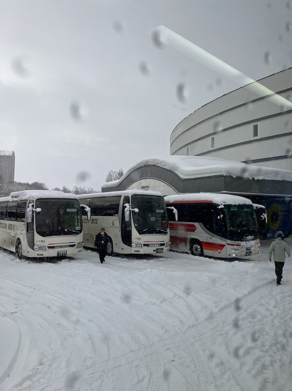 朝ごはんを食べ、8:50頃理系(1〜6組)、9:10頃文系(7〜13組)、函館に向けて出発しました。